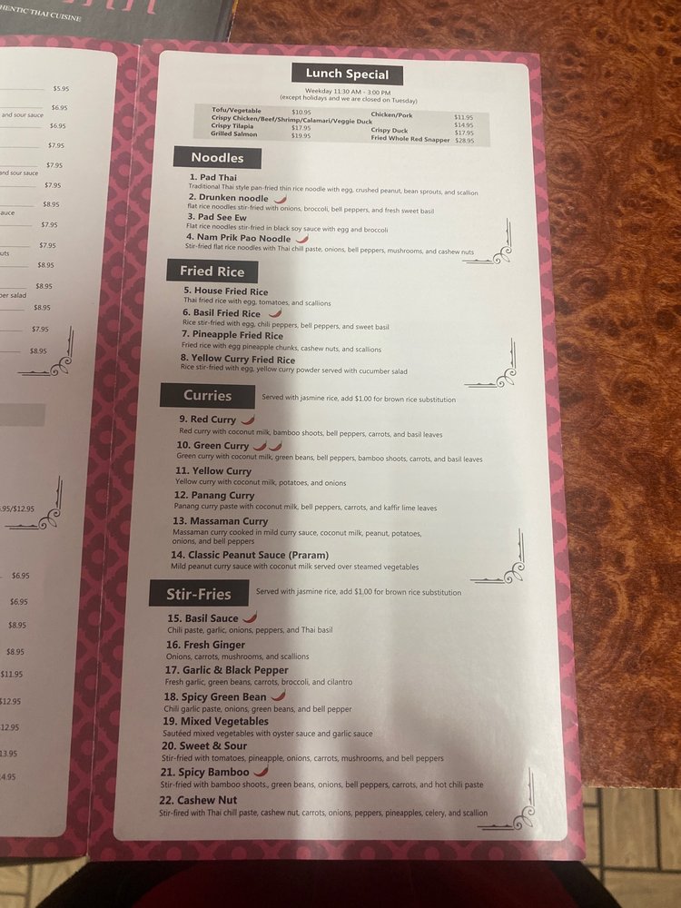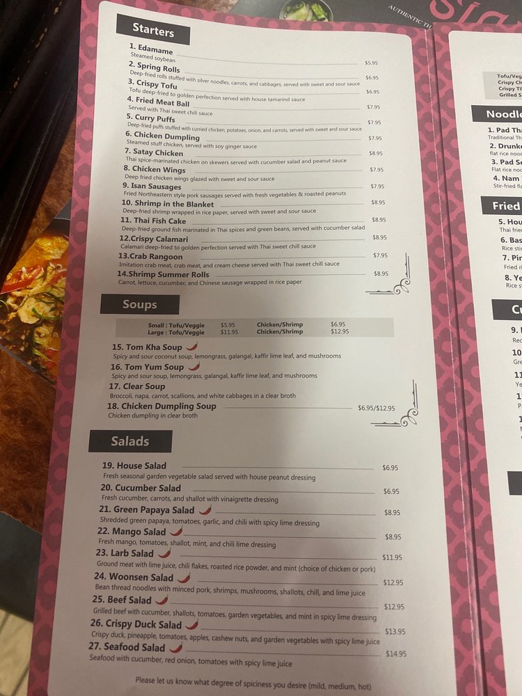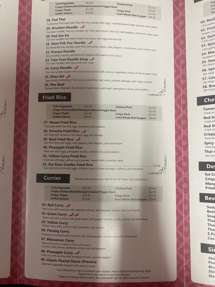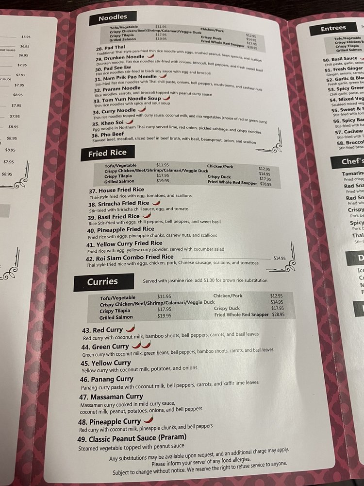 Roi Siam, a Thai restaurant in Union City, NJ, offers a diverse menu with options like Edamame, Spring Rolls, and Crispy Tofu for appetizers. Their soups include Tom Kha Soup and Tom Yum Soup, both bursting with authentic Thai flavors. The salads, such as the Larb Salad and Green Papaya Salad, are refreshing and packed with unique ingredients. Customers rave about the food quality and timely delivery, with highlights being the Thai curry, Pad Kee Mao, and Pad See Ew. The use of fried tofu adds a delightful texture to dishes like the Pad Thai. Despite a few minor complaints about greasiness in some dishes, the overall consensus is that Roi Siam offers flavorful, well-prepared Thai cuisine that stands out among other Thai restaurants in the area. Overall, Roi Siam delivers a satisfying culinary experience with its delicious and consistent offerings.